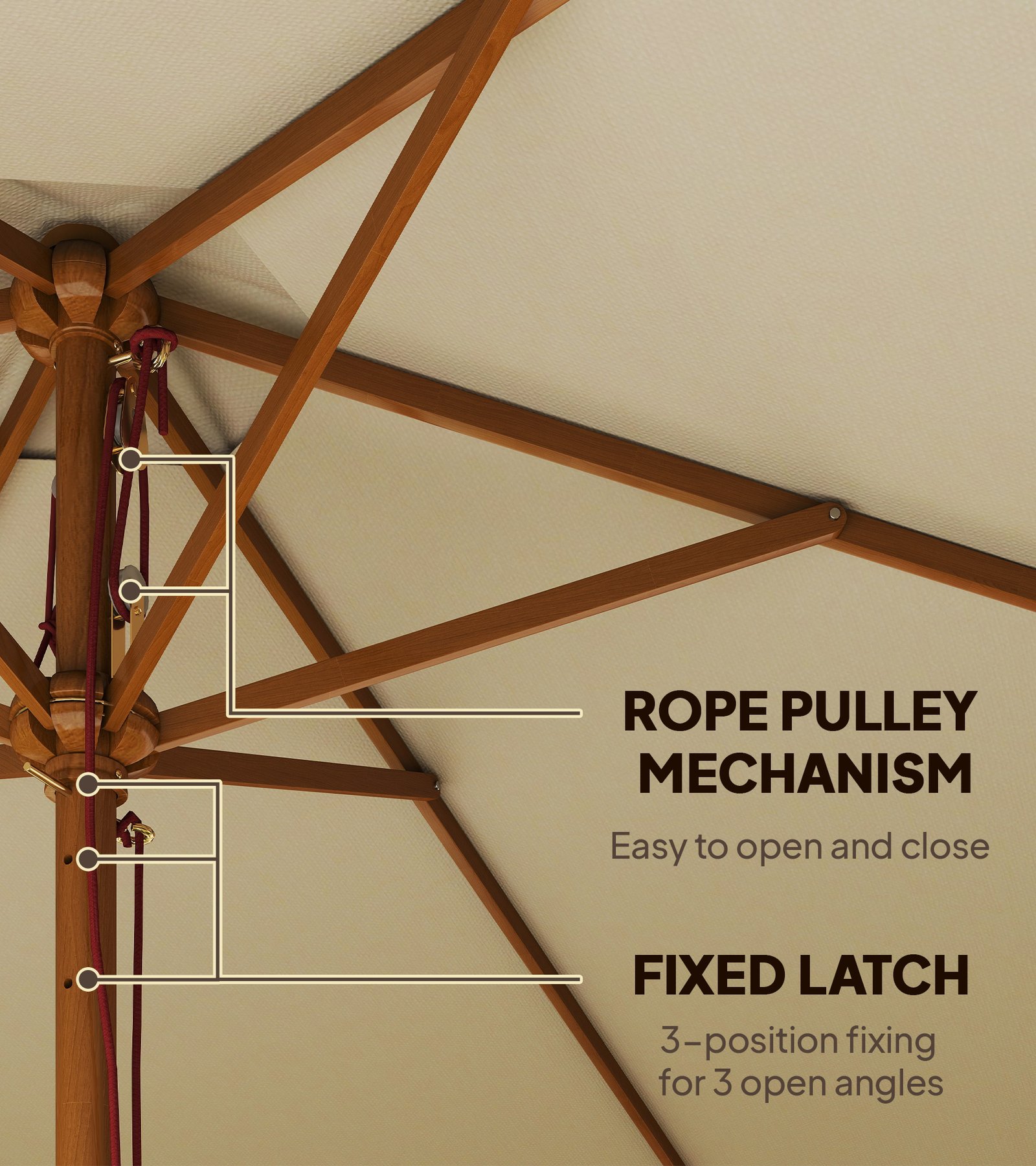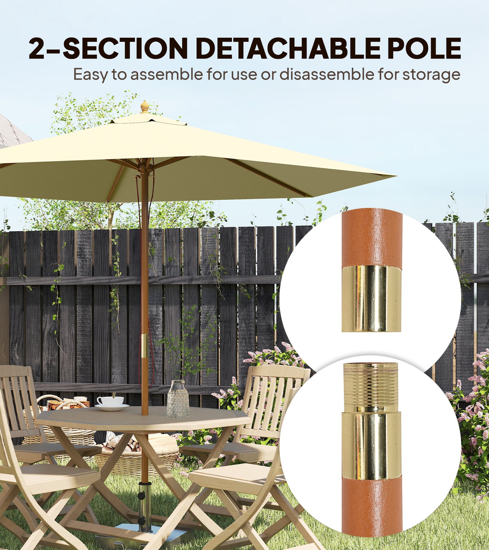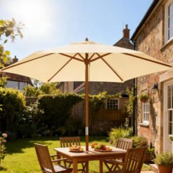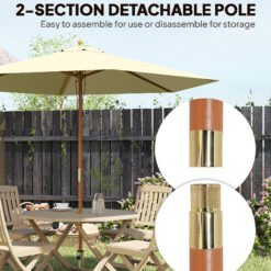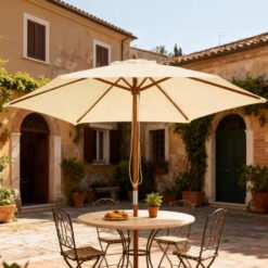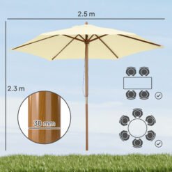 - 2.5m large parasol supported by 6 wooden ribs