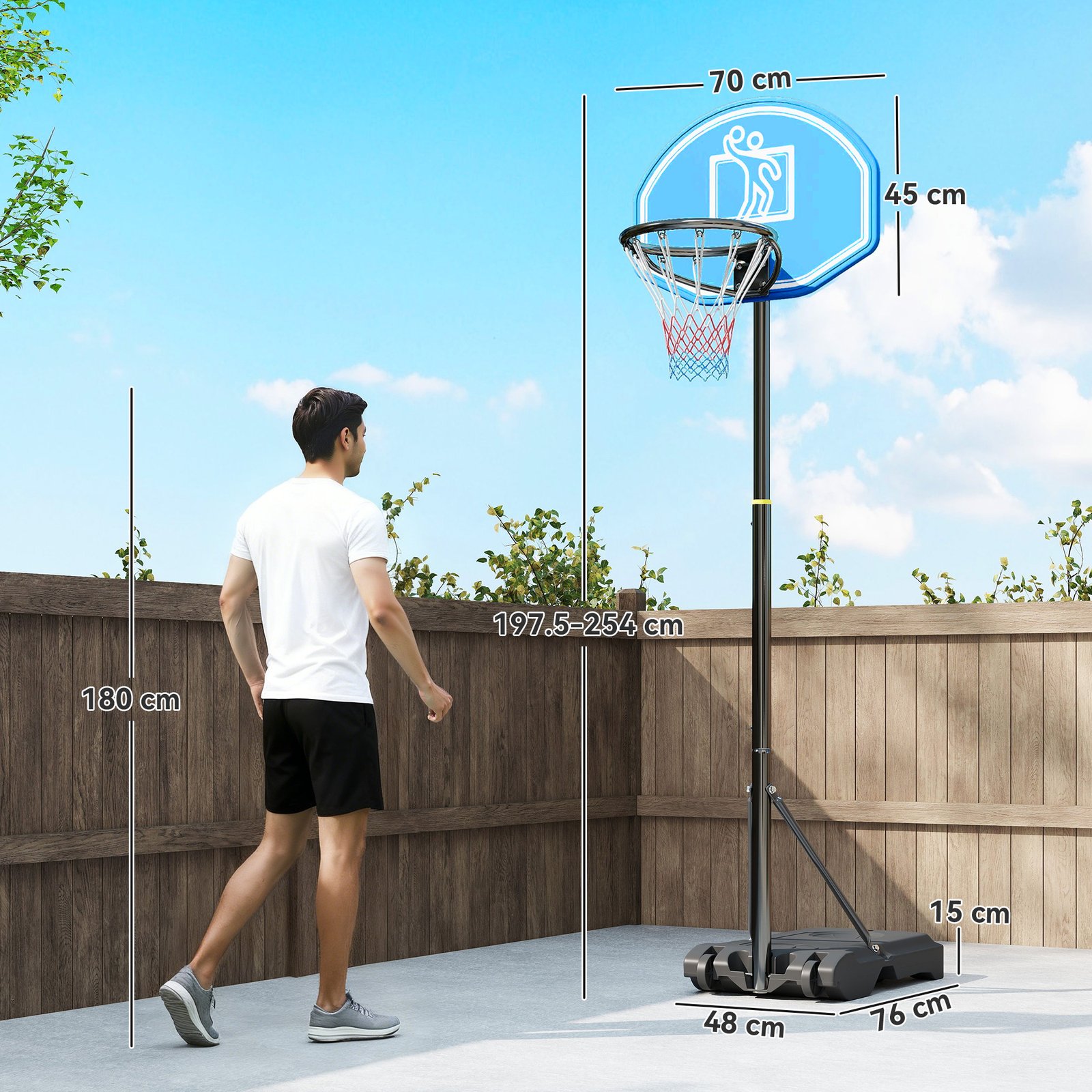 SPORTNOW Six-Level Height Adjustable Freestanding Basketball Hoop and Stand with Wheels, 2.35-3.05m