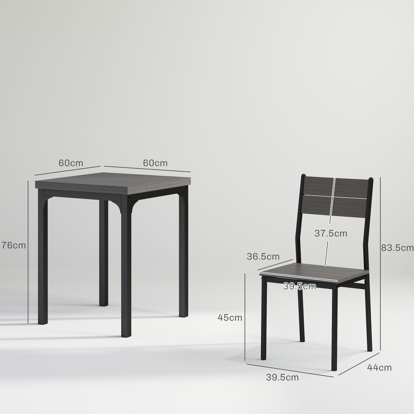 HOMCOM Three-Piece Minimal and Compact Dining Set, Grey Wood Grain