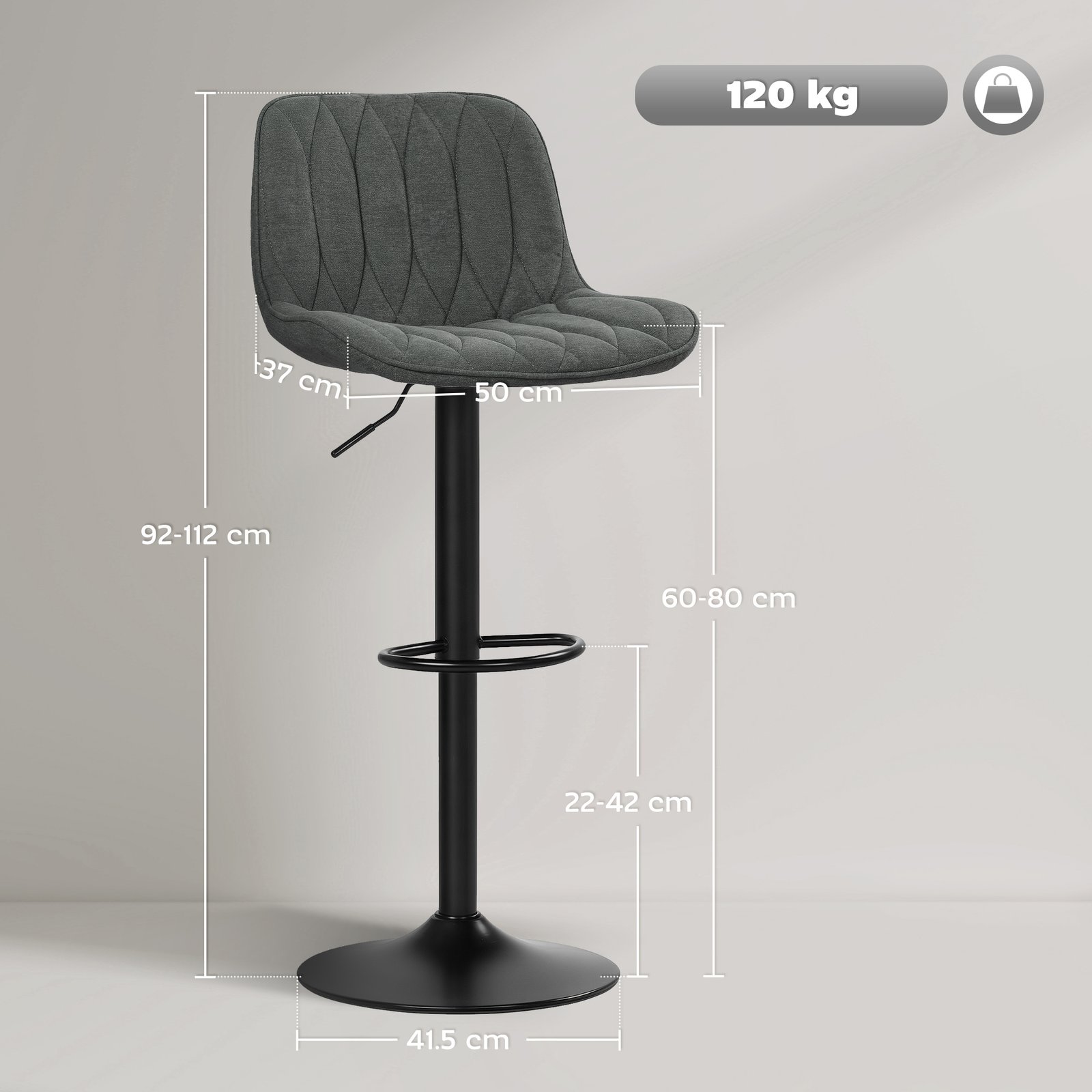 HOMCOM Breakfast Bar Stools Set of 2 Linen upholstery 60-80cm Adjustable Height – Green
