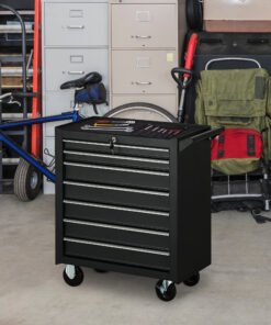 DURHAND 7-Drawer Tool Box on Wheels, Lockable Tool Cabinet with EVA Pat & Ball Bearing, Matte Black