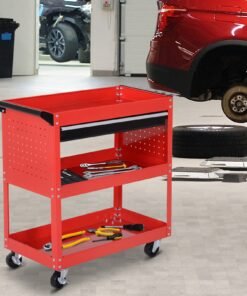 DURHAND Lockable Metal Tool Box, 3 Drawer Tool Chest with Latches, Handle, Ball Bearing Runners, Red