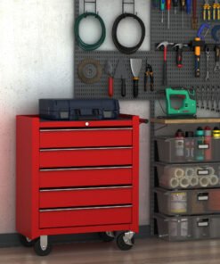 DURHAND 5-Drawer Tool Box on Wheels 150KG Load Tool Storage Cabinet with EVA Pad, Red
