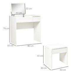 HOMCOM Makeup Desk with Drawer, Vanity Table Set with Flip-up Mirror and Cushioned Stool, White