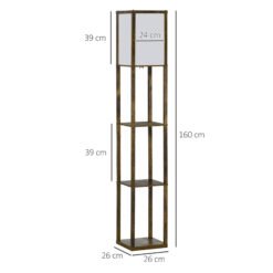 HOMCOM Shelf Floor Lamp Standing Lamp W/4-tier Wooden Open Shelves,26L x 26W x 160Hcm-Black/White
