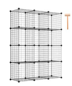 16 Cubes Portable Wardrobe with Open Shelves and Hanging Rods