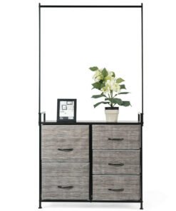 Heavy Duty Clothes Rack with 6 Removable Drawers and 3-Tier Open Shelves-Grey