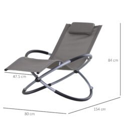 Outsunny Steel Frame Zero Gravity Rocking Lounge Chair w/ Pillow Grey