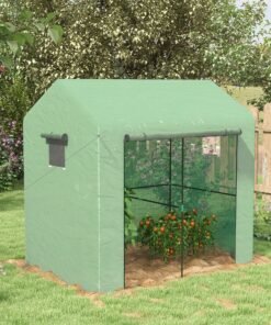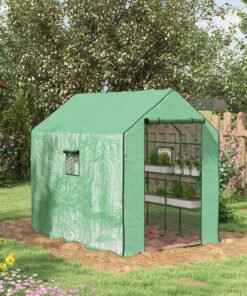 Outsunny 120 x 186cm Walk-In Greenhouse, with Shelves – Green