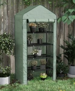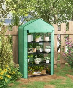 Outsunny 40 x 100cm Three Shelf Steel Frame Greenhouse – Green