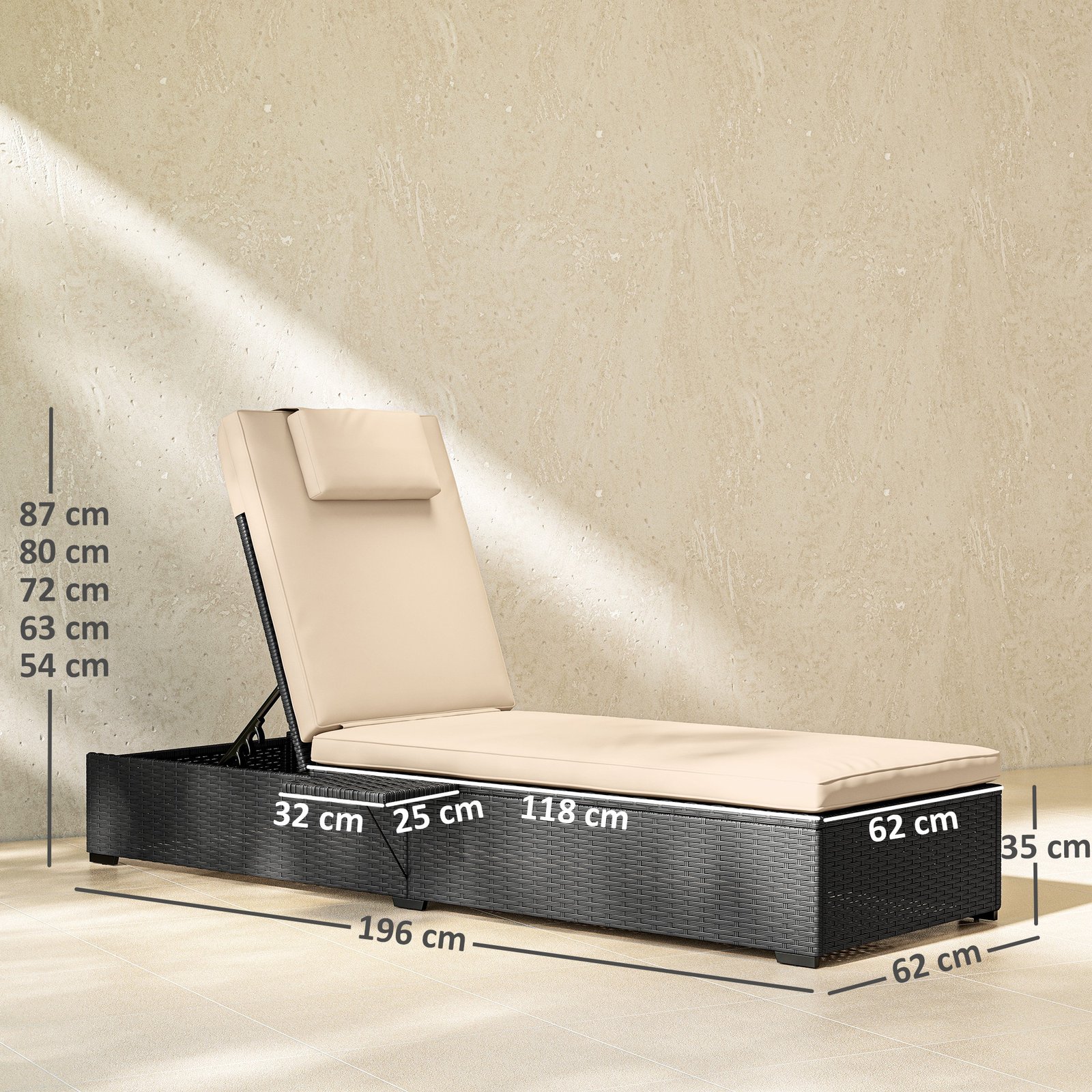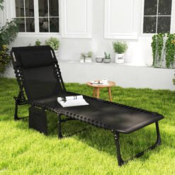 Outsunny Garden Sun Lounger, with Five-Position Back – Black