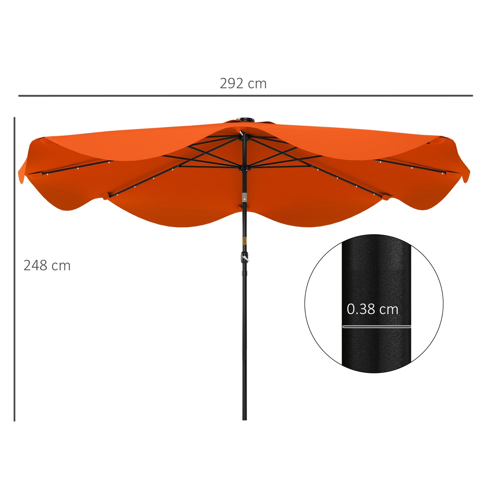 Outsunny 2.7m Outdoor Patio Garden Umbrella Parasol with Tilt Crank and 24 LEDs Lights, Orange