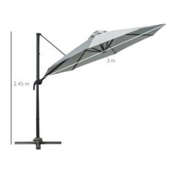 Outsunny 3(m) LED Cantilever Parasol Garden Sun Umbrella w/ Cross Base and Solar Lights Grey