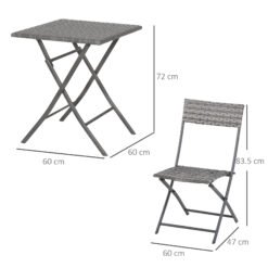 Outsunny 2-Seater Chair Bistro Set Garden Patio Table & Chair Black Rattan Furniture Grey