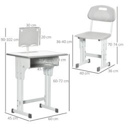 HOMCOM Kids Desk and Chair Set, Student Adjustable Writing Desk, with Drawer, Pen Slot, Hook – Grey