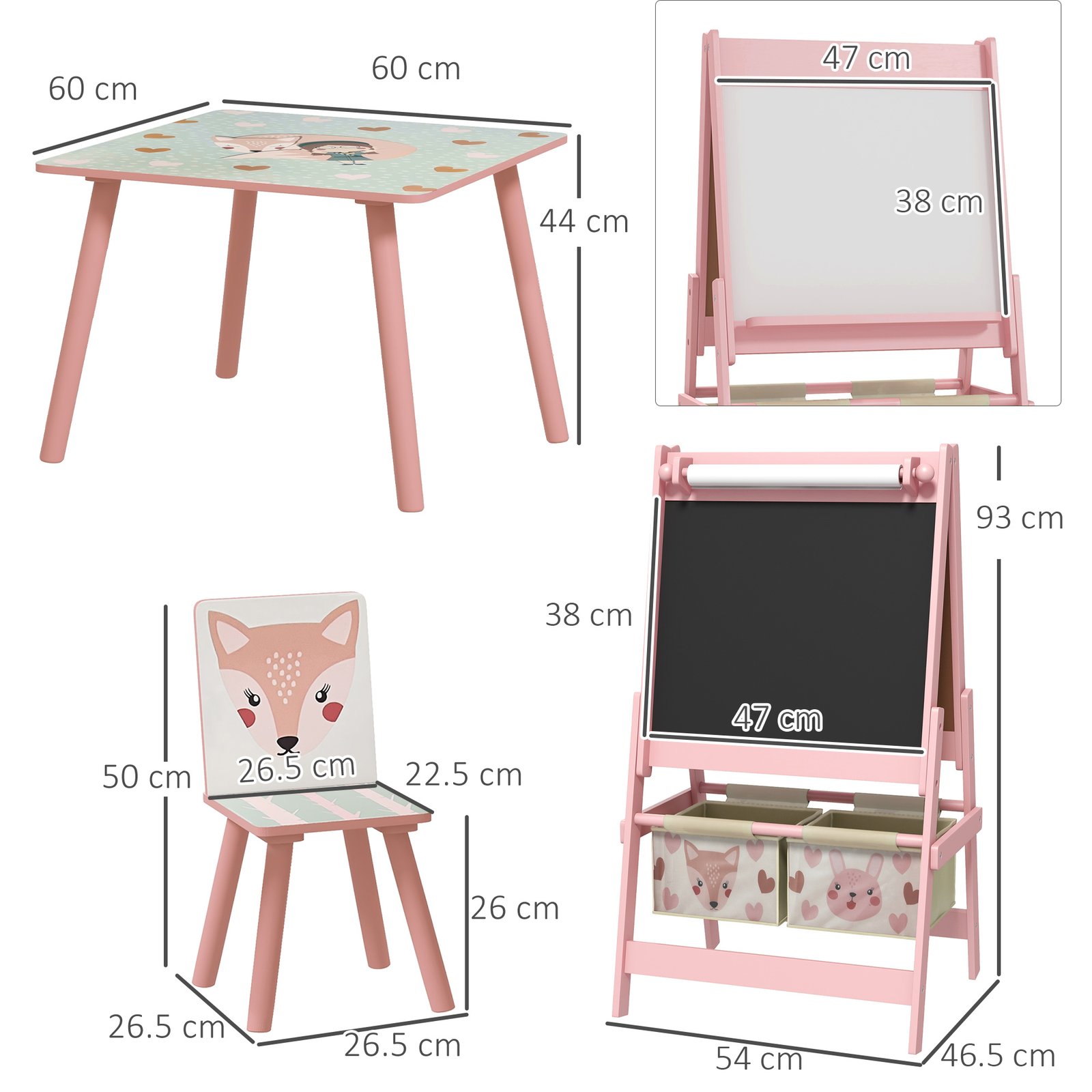 HOMCOM Kids Desk and Chair Set, with Storage Shelves, Washable Cover, for Ages 3-12 Years – Pink