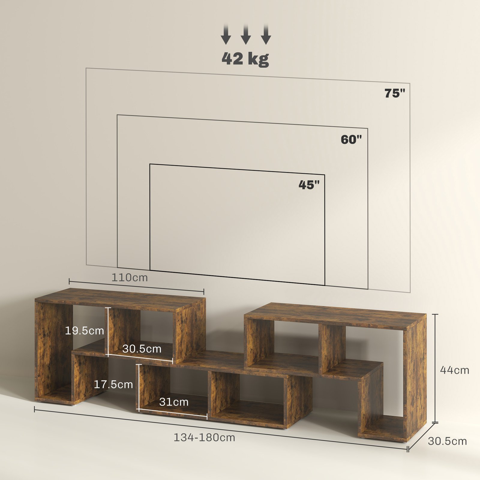 HOMCOM Bathroom Cabinet, Freestanding Bathroom Cabinet with Open Compartments and Double Doors
