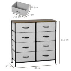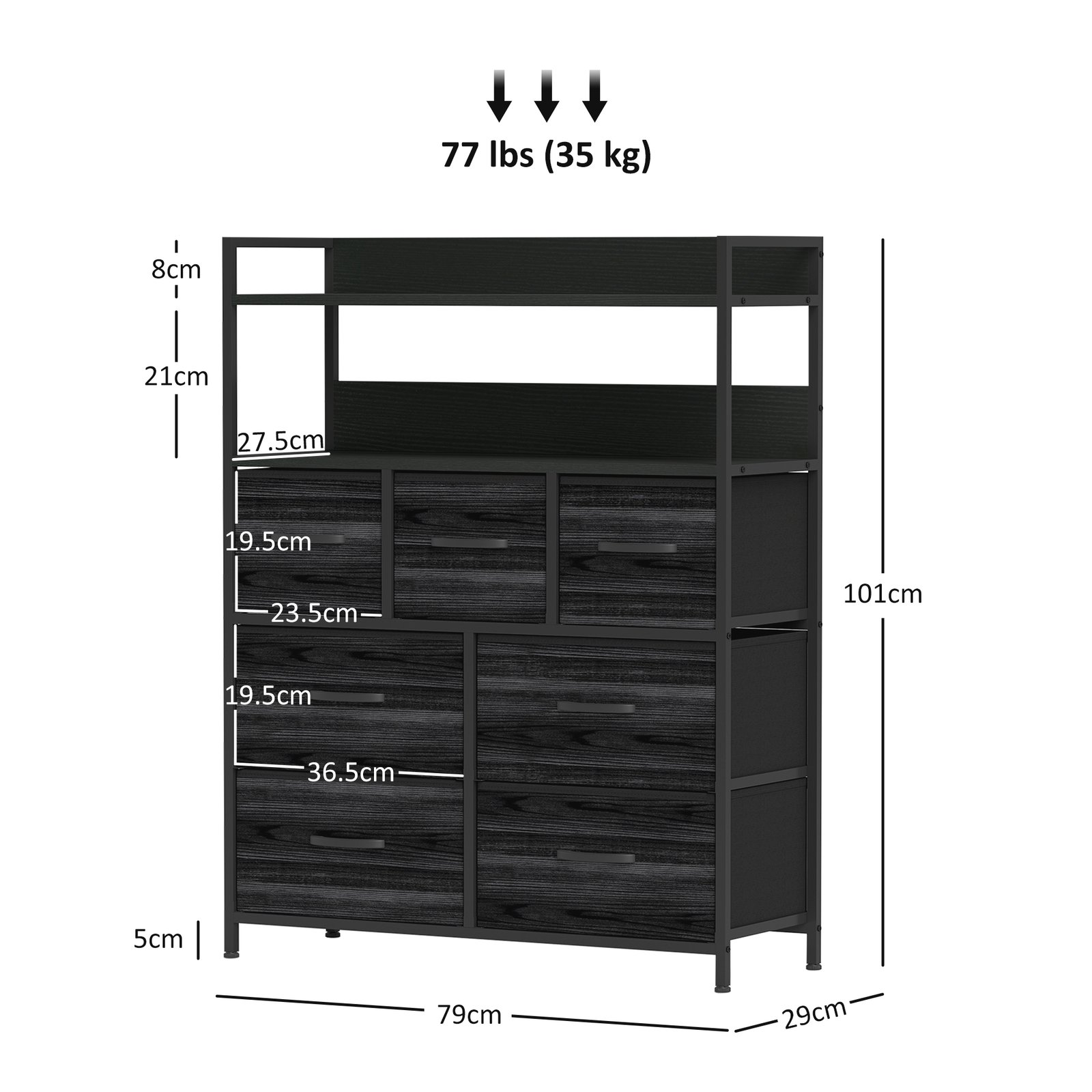 HOMCOM Rustic Chest of Seven Fabric Drawers – Grey Wood Effect