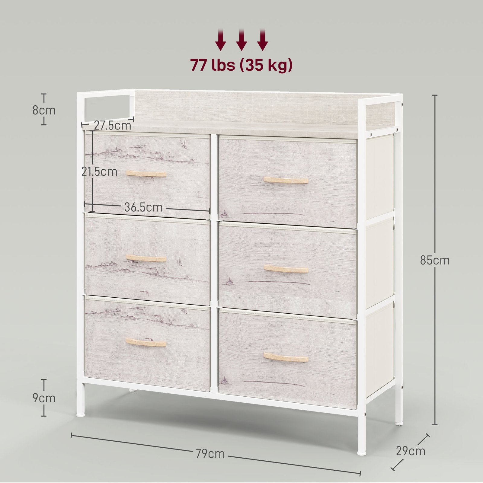 HOMCOM Rustic Chest of Six Fabric Drawers – Grey Wood Effect