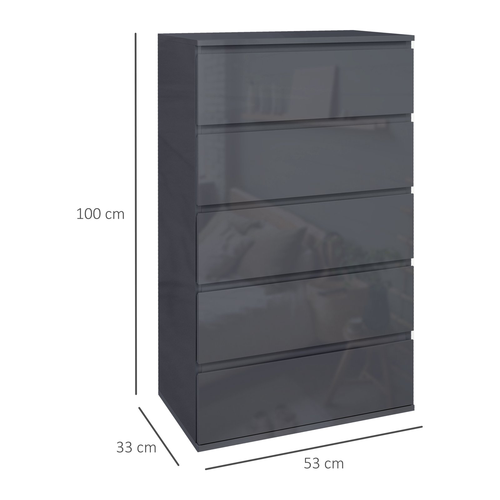 HOMCOM High Gloss Chest of Drawers, 4-Drawer Storage Cabinets, Modern Dresser for Bedroom, Grey