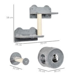 PawHut Four-Piece Cat Wall Furniture with Hammock, Perches, Ladder, Scratching Post, Grey
