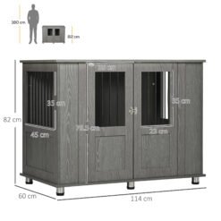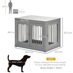 PawHut Dog Crate End Table Furniture Style Dog Cage w/ Three Doors, Locks and Latches – Grey