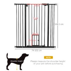 PawHut Extra Tall Pet Gate, Indoor Dog Safety Gate, with Cat Flap, Auto Close, 74-101cm Wide – Black