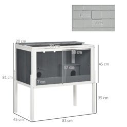 PawHut Wooden Hamster Cage for Dwarf Hamsters, Gerbils, Rutin Chicken, with Shelf, Two Huts – Grey