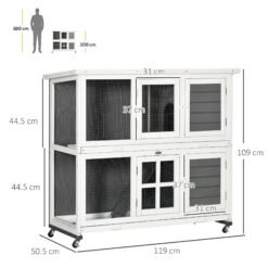 PawHut Indoor Rabbit Hutch, Guinea Pig Cage, with Slide-Out Tray, Large Fenced Area – Light Grey