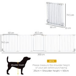 PawHut Pet Safety Gate, for Doorways, Staircases, Hallways, with Extensions Kit, 75-103cm – White