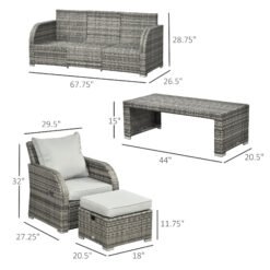 Outsunny White Rattan Garden Furniture 4-Seater Outdoor Sofa Set with Coffee Table – White