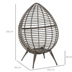 Outsunny Teardop PE Wicker Rattan Chair w/ Thick Cushions 4 Legs Outdoor Seat Egg Garden