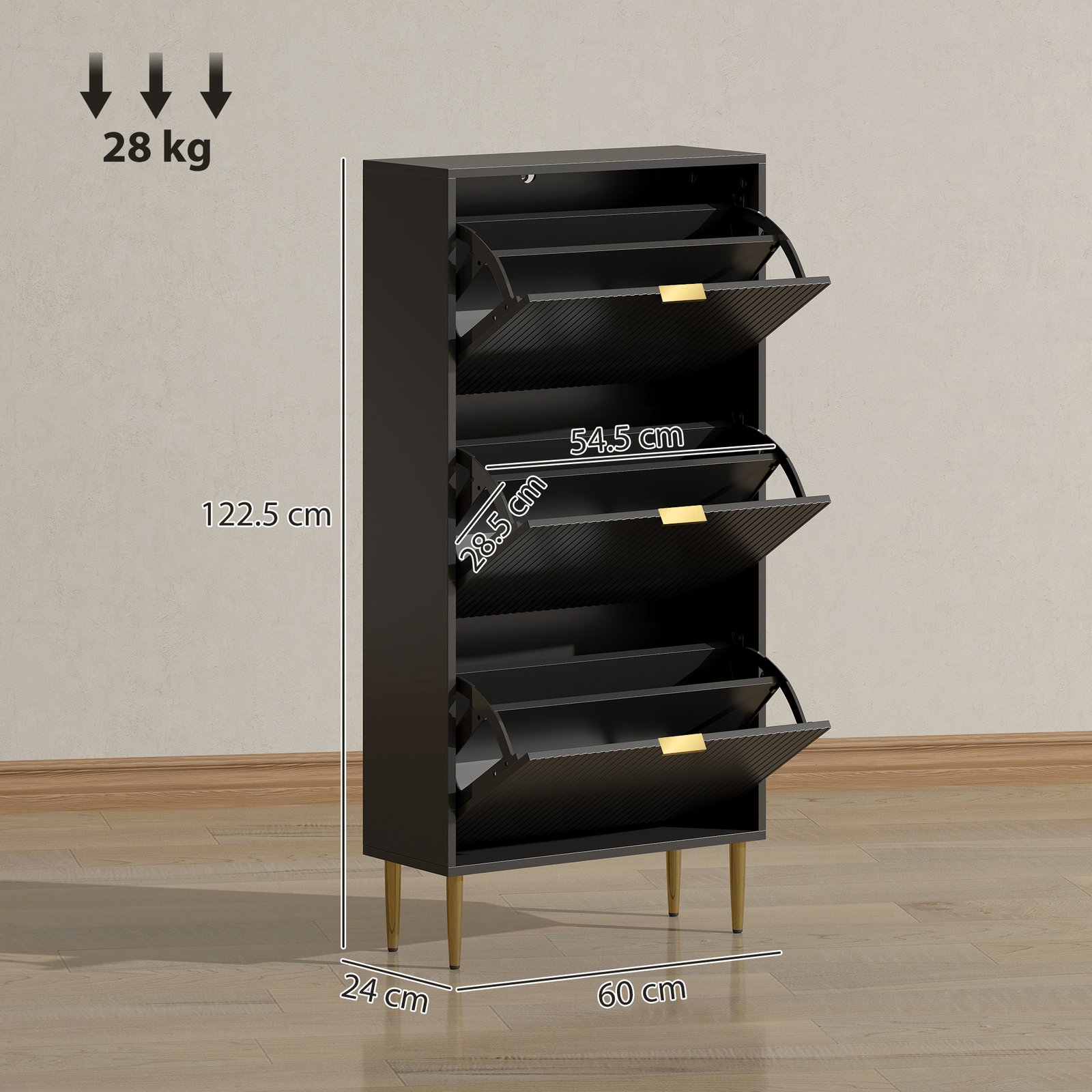 HOMCOM Shoe Storage Cabinet with Slide Out Drawer, 2 Flip Doors, Tempered Glass Top – Black