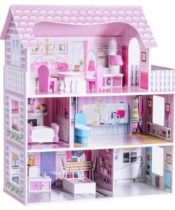 Kids Wooden Dollhouse DIY Pretend for Toddlers 3-7 Years Old-Pink