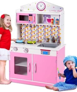 Kids Kitchen Set with Sink and Faucet, Stove, Oven and Microwave