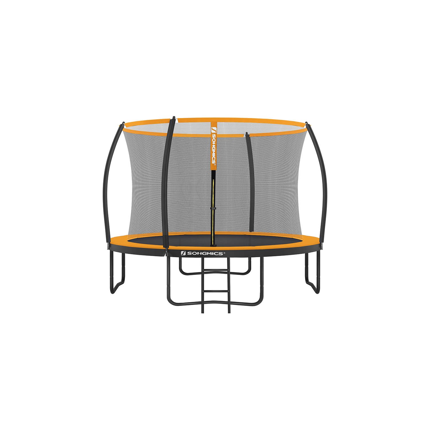 Fun in the GardenThis 10 ft (305 cm) trampoline is the perfect way to have fun on a warm afternoon (and maybe even sneak in a little workout). Let your children safely bounce to their heart’s content with this SONGMICS trampoline while you enjoy gardening or getting ready for a delicious barbecue.Above All, Safety MattersWhile it’s important to have fun, it’s even more important to keep safe. This 10 ft trampoline was designed with a dense inner mesh that is more resistant to impacts and reduces the chance of hitting the poles on the outside. The arch poles are covered with a EPE foam for even more safety.Specifications:- Colour: Black, Orange- Size: 10 ft (305 cm) Dia.- Material of Base: Galvanized Steel Tubes- Material of Jumping Pad: Polypropylene (265 g/m²)- Material of Safety Pad: PVC (310 g/m²) + EPE Foam- Height Between Base and Floor: 76 cm- Max. Load Capacity: 150 kgPackage Contents:- 1 x 10 ft Trampoline- 1 x Ladder- 1 x Accessories Kit- 1 x Instructions (EN, DE, FR, ES, IT)SONGMICS Notes:- Only one person should use the trampoline at a time. More than one person can result in injury.- Do not attempt somersaults on the trampoline.- Do not hang on the top bar of the trampoline net.- Remove all sharp objects before going on the trampoline.- Not suitable for children under 3 years old.- For home use only.