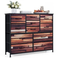 11-Drawer Dresser Tall Storage Chest with Metal Frame-Brown