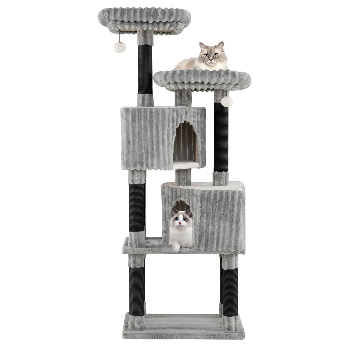 156 cm Large Multi-level Cat Tree with 2 Condos-Light Grey