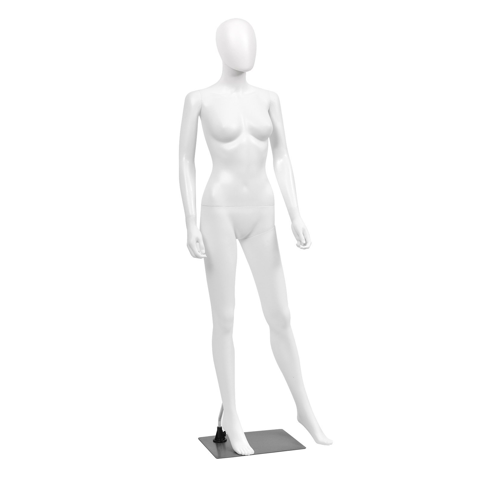 This 177 cm full body female mannequin will totally display the beauty of your clothes.With standard height and measurements, the mannequin fits multiple kinds of clothes well and maximizes the charm. You can simply adjust the head and arms for different postures. And the arms, wrists, waist and legs of the model are detachable, so you can dress or undress it without effort. Furthermore, the metal base with galvanized steel supporting bar ensures high-level stability and prevents the mannequin from tipping over. No matter for clothing store, exhibition or drawing office, this female mannequin will always be a perfect choice. If you are looking for a full body female mannequin like this, do not hesitate to place an order! Multiple Adjustable Postures: Multiple body parts of this female mannequin are adjustable to meet your different demands. Both the head and arms can be freely swiveled as you need. Therefore, you can adjust the mannequin into your wanted position to better display the beauty of clothes. Built-to-Last PP Material: The mannequin is mainly constructed of selected PP plastic, which is not easy to deform or crack, ensuring long-lasting serving time. What’s more, the whole mannequin is in elegant white, matching different styles of clothes well. And the surface is quite smooth, making daily maintenance super easy just with a soft cloth. Stable Metal Base: This female mannequin is designed with a rectangle base on the bottom. Measuring 40 x 30 cm, the rustproof and solid metal base offers sufficient standing area for the model. Furthermore, the galvanized steel supporting bar is effective to prevent the mannequin from tipping over. Fit All Kinds of Clothes: The mannequin features detachable arms, wrists, waist and legs, which make it simple to dress or undress. And this full body mannequin with suitable size is perfect for different clothes like skirt, blouse, overcoat, hat, shoes and so on. Also, it’s ideal for various occasions, such as exhibition, clothing store, photographic studio and drawing office. Simple Assembly and Movement: Coming with a clear instruction, the mannequin can be quickly put together without too much efforts. Apart from that, this mannequin weighs only 15.5 lbs, which is lightweight for you to carry it anywhere you want. And it features standard figure with 177 cm height, 84 cm chest, 61 cm waist and 86 cm hip.