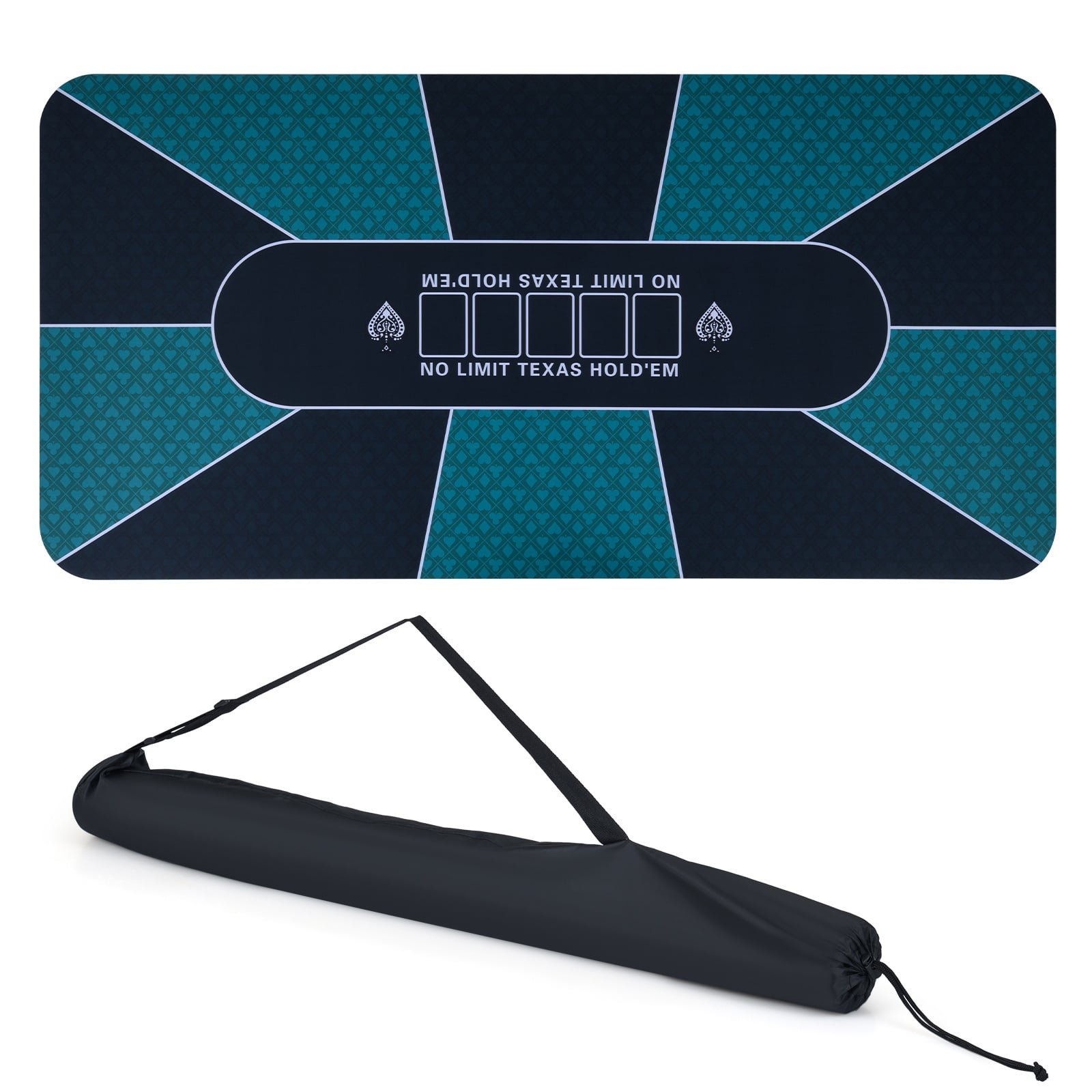 Color: Black & Green Material: Multi-spandex, Rubber Overall Dimensions: 180 x 90cm (L x W) Dimensions of Carrying Bag: 97 x 16 cm (L x Dia.) Thickness: 1.65 mm Net Weight: 2.3 kg Package Includes: 1 x Poker Table Mat 1 x Carrying Bag