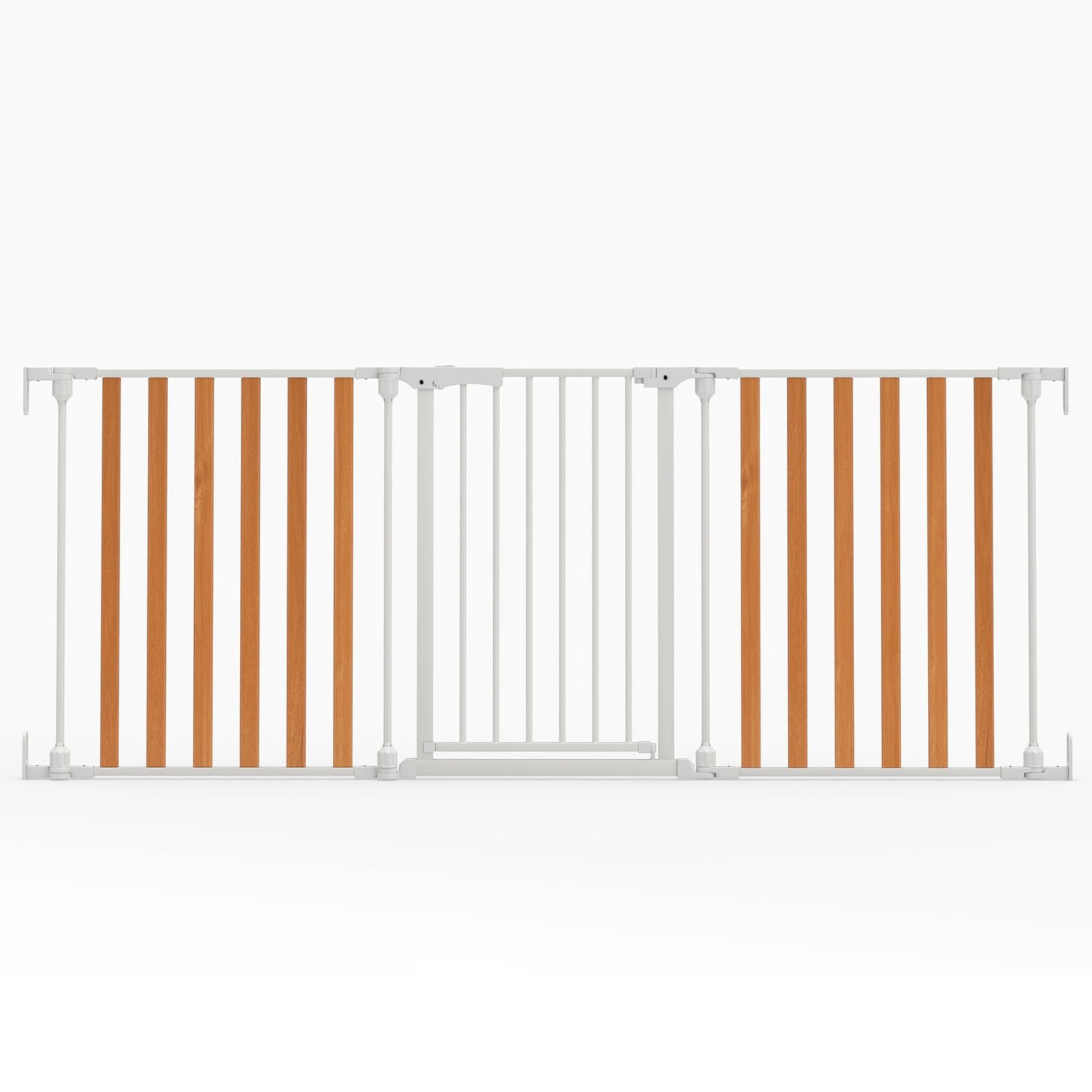 198 CM Extra Wide Configurable Baby Gate 3-Panel Indoor Wood Metal Pet Gate-Natural & White