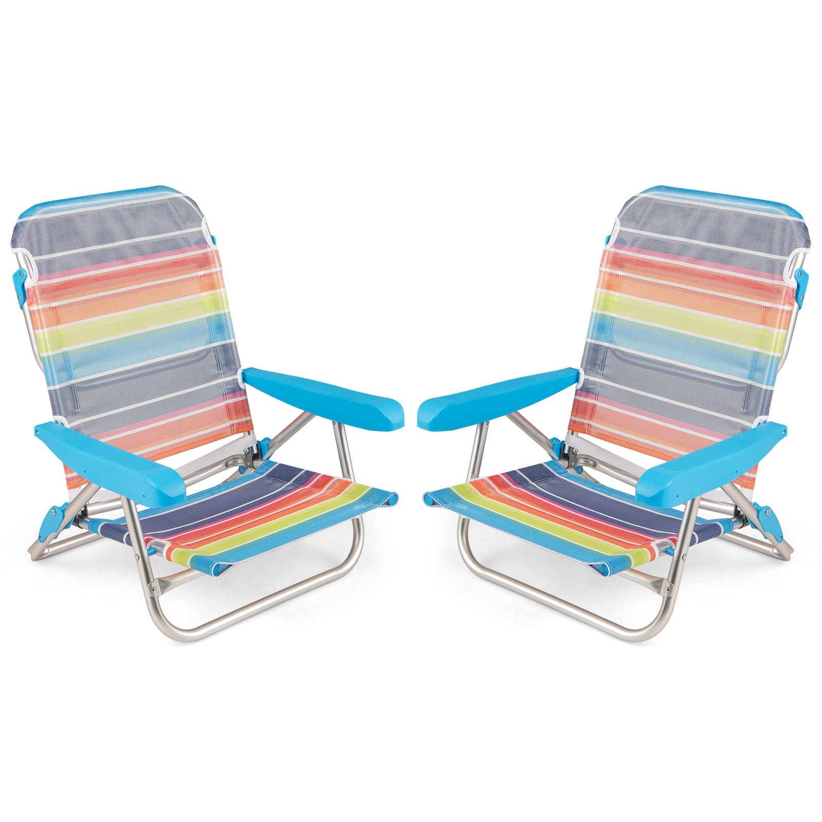 2 Pack Foldable Beach Chair with Armrests and Carry Strap-Colourful-S