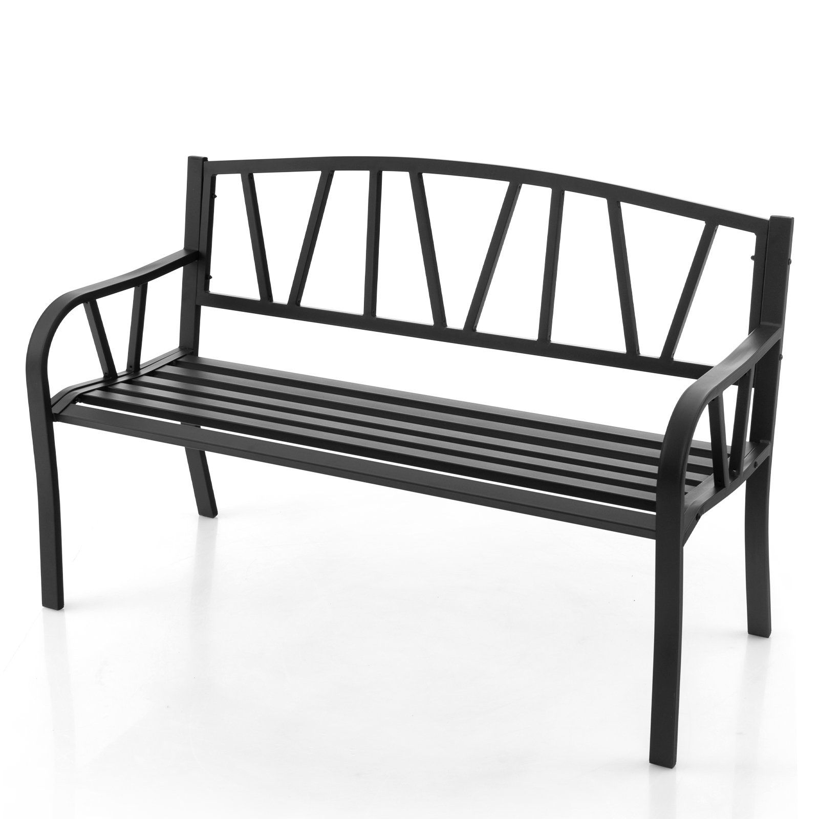 2-Person Metal Outdoor Bench with Backrest and Armrests-Black