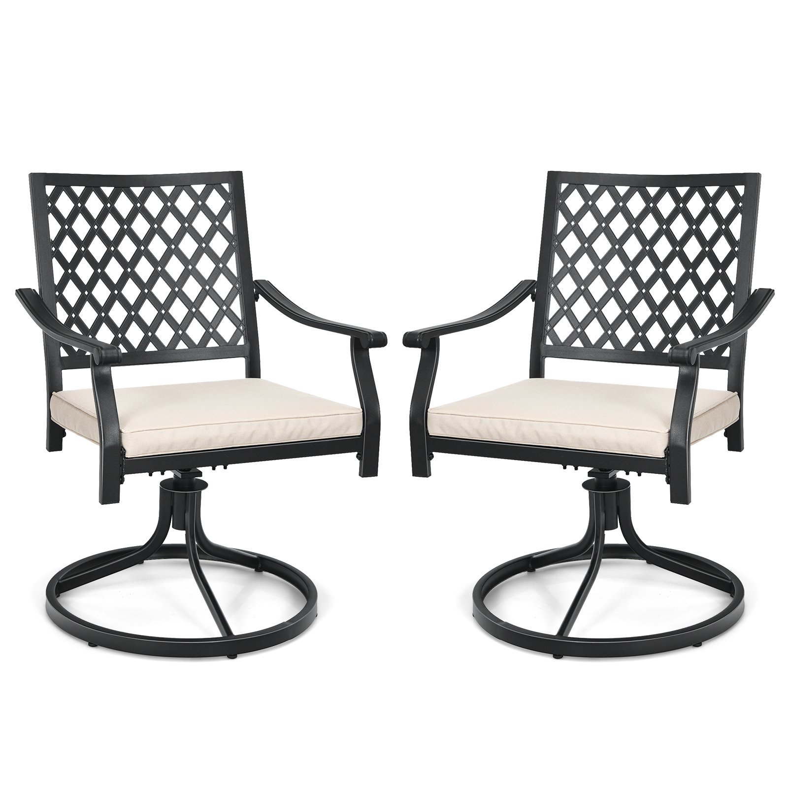 2 Pieces Outdoor Swivel Chair Patio Bistro Dining Chair Set with Soft Seat Cushion-Beige