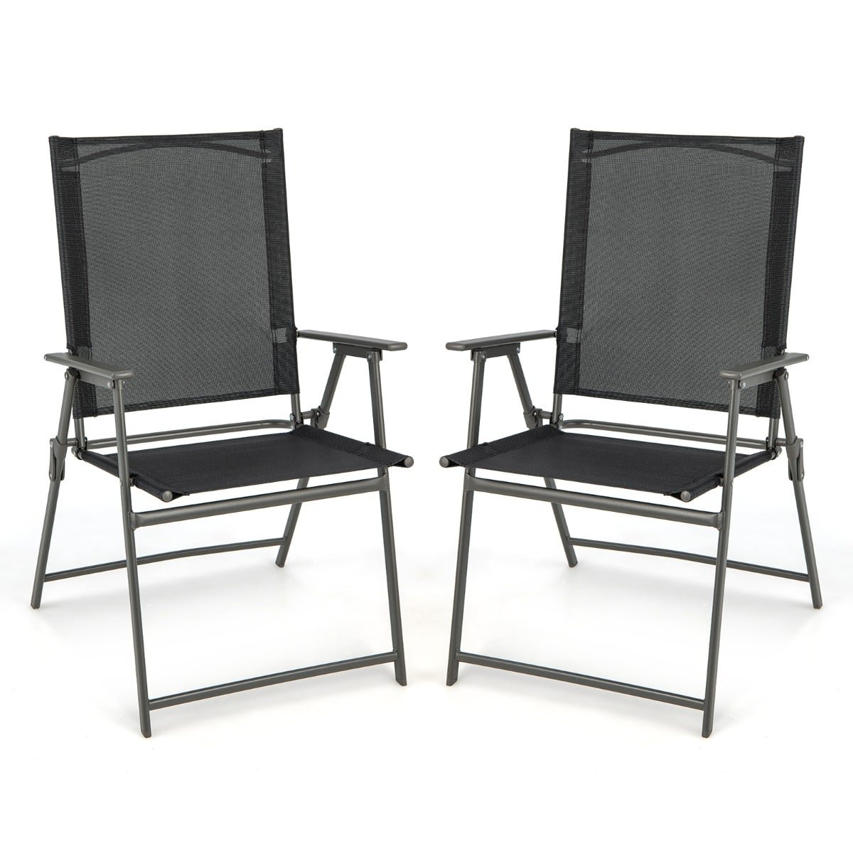 2 Piece Patio Folding Dining Chair Set with Weather-resistant Fabric-Black