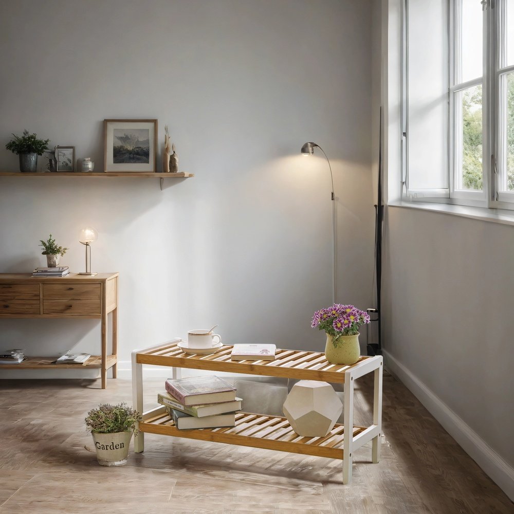 2-Tier Shoe Rack, Natural Bamboo Shelf, for Hallway Bedroom Bathroom