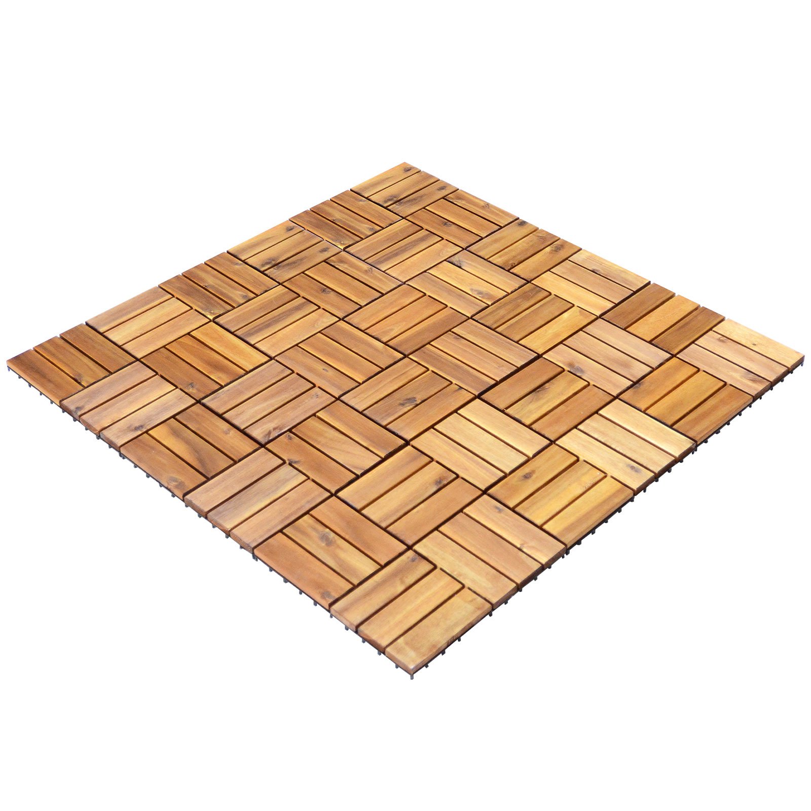 Colour: As the Picture Shows Material: Acacia Wood, Plastic Product Dimension: 30 x 30 x 2.4 cm (L x W x H) Covering Area: 2.5㎡ Net Weight: 19 kg Box Qty:1(May vary by batch)Package Includes: 27 x Acacia Wood Tiles