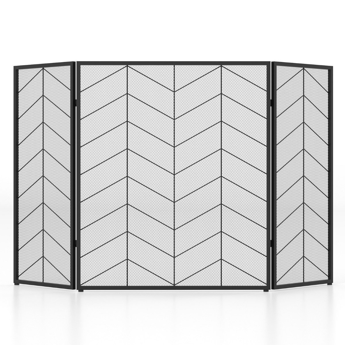 3-Panel Folding Spark Guard with Chevron Herringbone Pattern