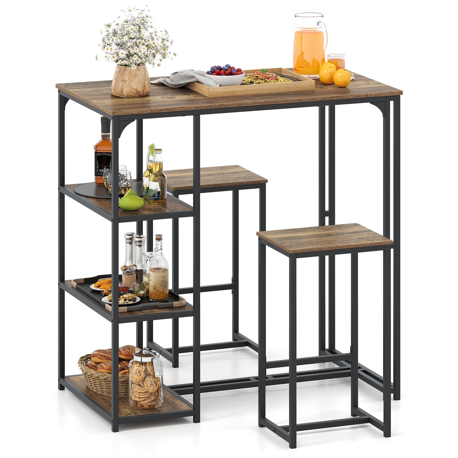 3-Piece Bar Table Set 2 Person Dining Furniture Set with 2 Stools-Brown