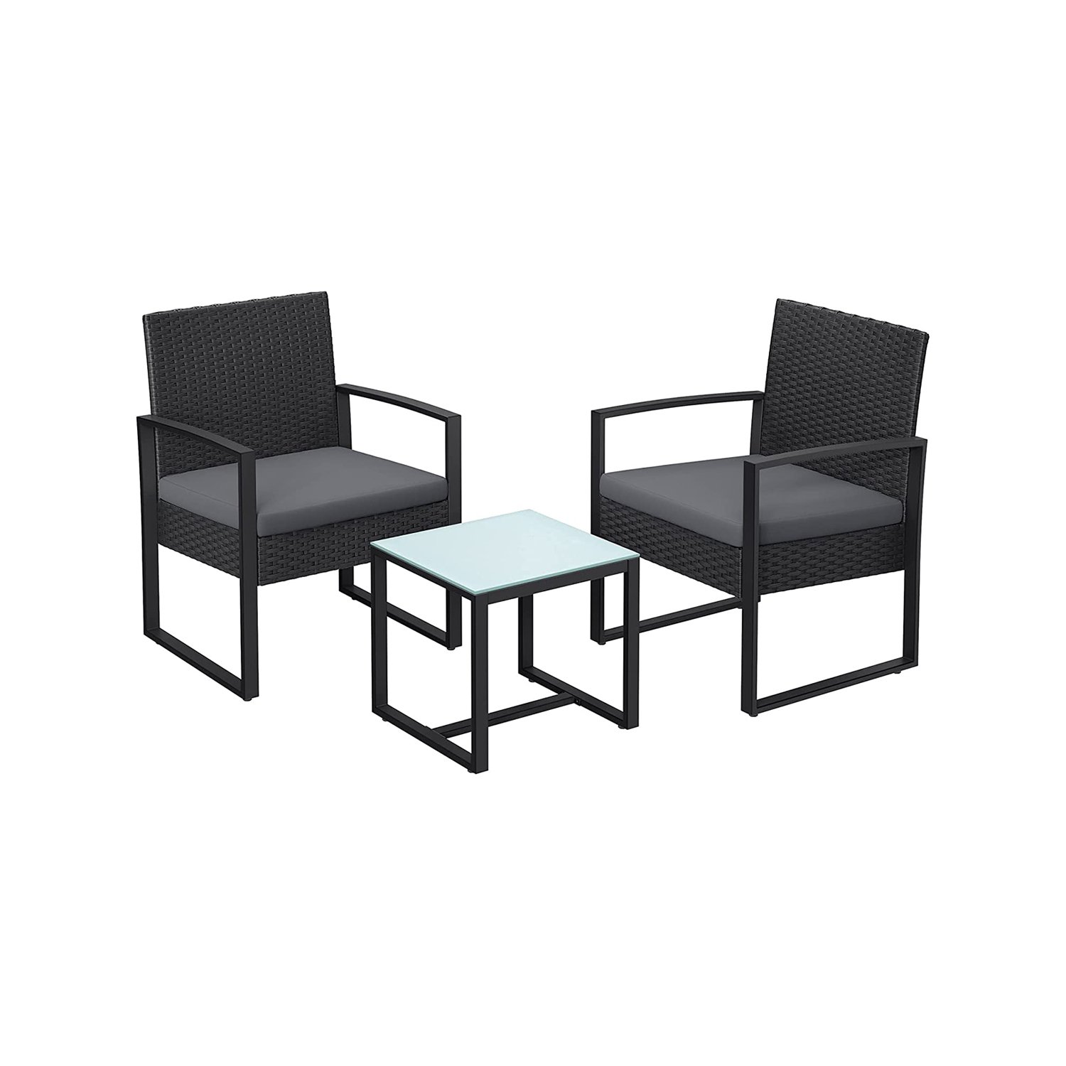 SONGMICS Garden Furniture Set, 3-Piece Outdoor Patio Furniture Sets, PE Rattan, Outdoor Seating for Bistro Front Porch Balcony, Easy to Assemble, 2 Chairs and 1 Table, Black GGF010B02